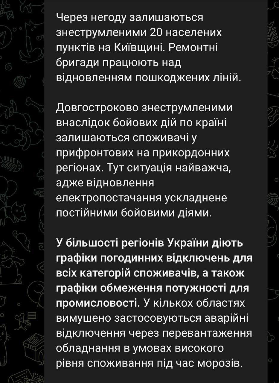За попередньою інформацією, раніше озвучені графіки відключень не діють, застосовуються аварійні відключення.