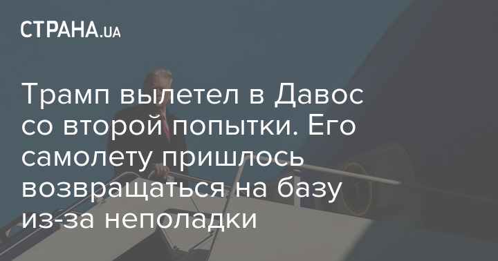 Його переліт почався з технічної затримки: борт номер один (Air Force One) невдовзі після зльоту повернувся на авіабазу Ендрюс, що поряд із містом Кемп-Спрінгс у Меріленді через проблему з електропроводкою. Після цього Трамп та його команда, до якої входять близько 300 осіб, пересіли на два літаки меншої місткості та знову вилетіли до Швейцарії.