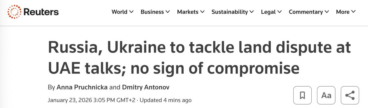Нагадаємо, що питання територій сьогодні буде основним на переговорах в Абу-Дабі. Український президент Володимир Зеленський відмовляється виводити війська зі сходу принаймні публічно.