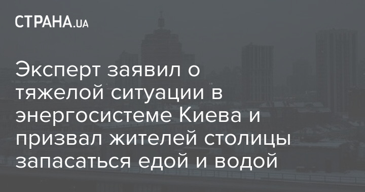 Експерт заявив про важку ситуацію в енергосистемі Києва та закликав жителів столиці запасатися їжею та водою
