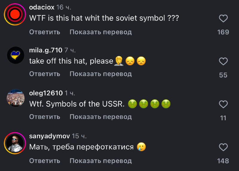 "Радянський Союз убив мільйони людей. Мільйони життів були знищені. Моя сім'я постраждала під час геноциду Голодомору. Як ви можете популяризувати цей символ?" - Помічають у Мережі.