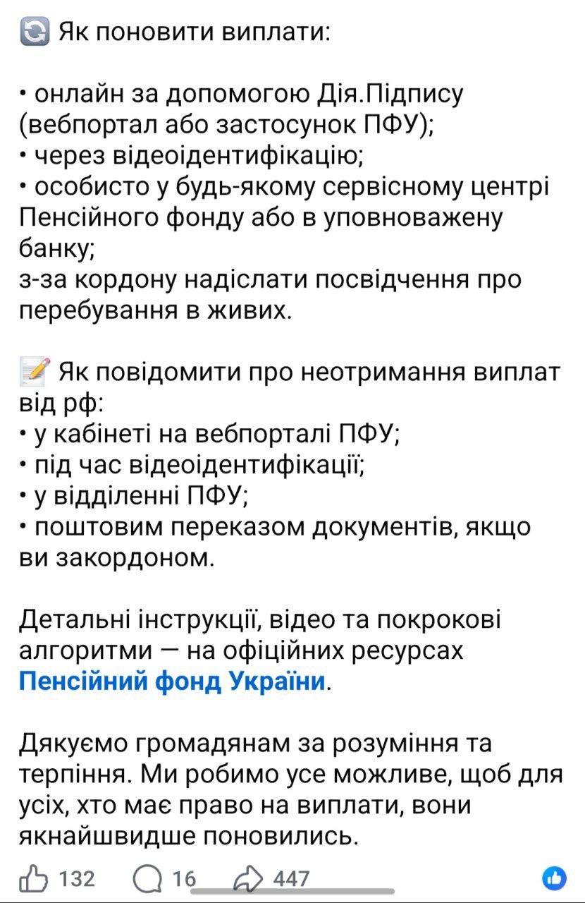 Повідомити про неотримання російської пенсії можна через відеоконференцію під час ідентифікації, через особистий кабінет на сайті Пенсійного фонду, через особистий візит до відділення фонду або поштою.