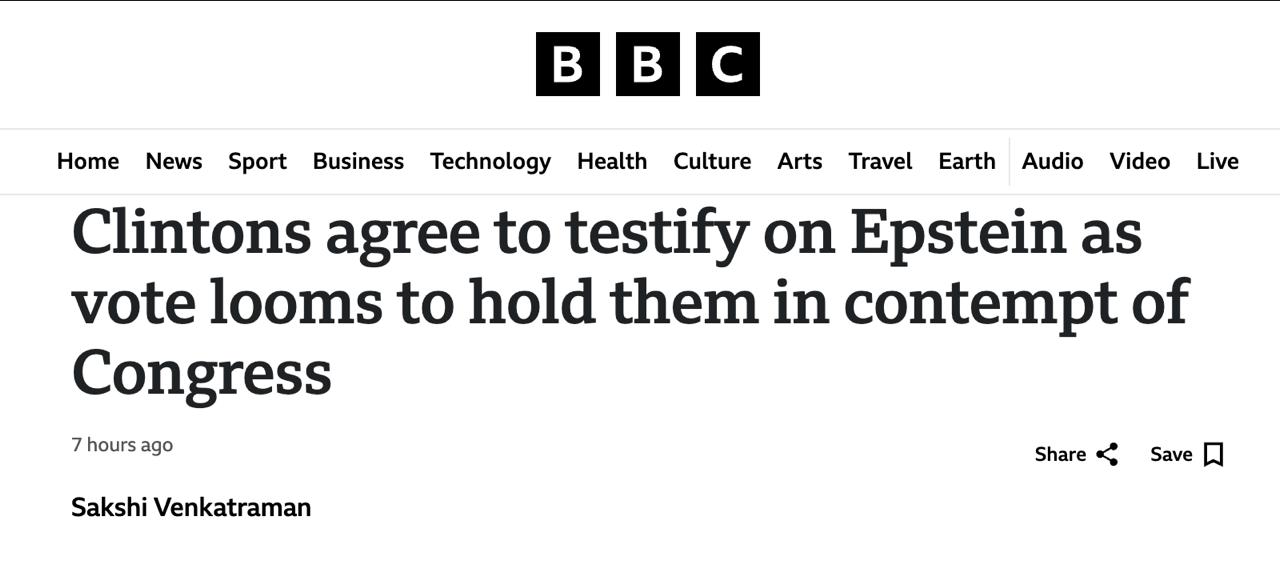 Колишній президент США Білл Клінтон та його дружина Хілларі, яка обіймала посаду держсекретаря, погодилися дати свідчення комітету з нагляду палати представників, який з ініціативи республіканців розслідує зв'язки засудженого за педофілію фінансиста Джеффрі Епштейна з впливовими постатями.