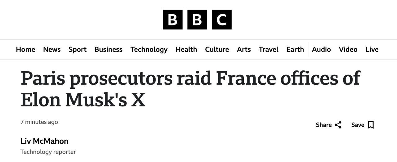 Підрозділ паризької прокуратури, який займається боротьбою з кіберзлочинністю, спільно з відділом національної поліції Франції та Європолом, який працює в тій же сфері, провів обшук в офісі французького представництва компанії амріканського мільярдера Ілона Маска, яка володіє соцмережею X (у минулому Twitter).