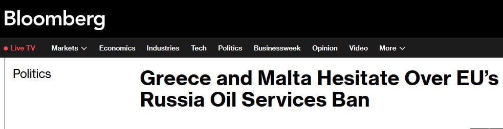 Греція та Мальта заблокували пропозицію Євросоюзу замінити стелю ціни російської нафти забороною на послуги, необхідні для транспортування палива.
