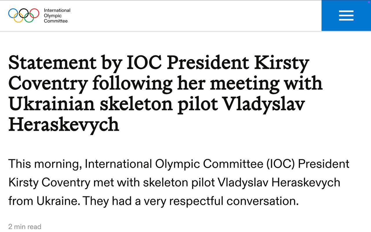Про це заявила президент МОК Кірсті Ковентрі, її слова опубліковані на сайті Комітету.