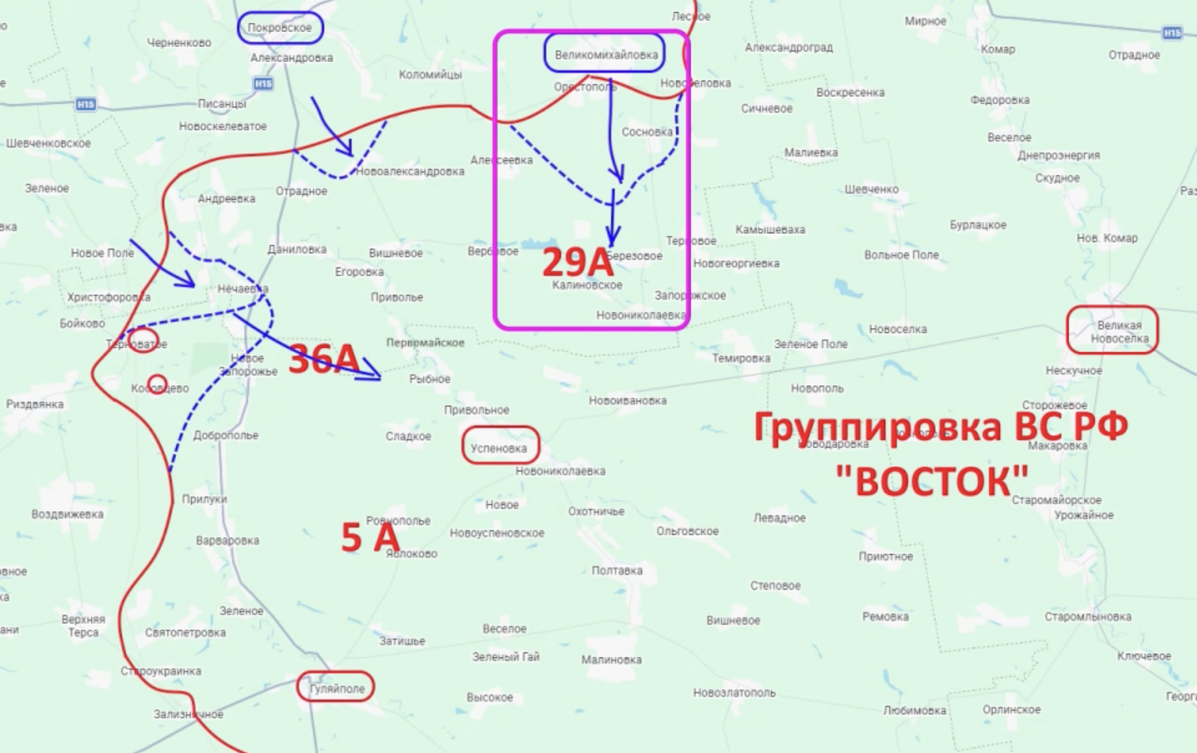 "Передові підрозділи ЗСУ просунулися у напрямку до Терноватого - Добропілля, очевидно вже форсувавши річку Гайчур і звільнивши останнє. Українським військам, очевидно, вдалося також зав'язати бої за Варварівку, вибивши противника з позицій у Прилуках і Оленокостянтинівці. Очевидно, передові частини і підрозділи дільницях змушені відходити (східніше) за дорогу Гуляйполе – Покровське, яку вони взяли під свій контроль кілька тижнів тому”, – заявляє Машовець.