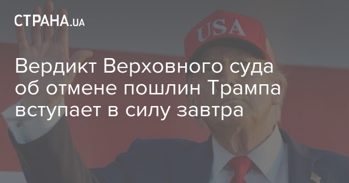 Скасування Верховним судом США введених американським президентом Дональдом Трампом мит набирає чинності завтра.