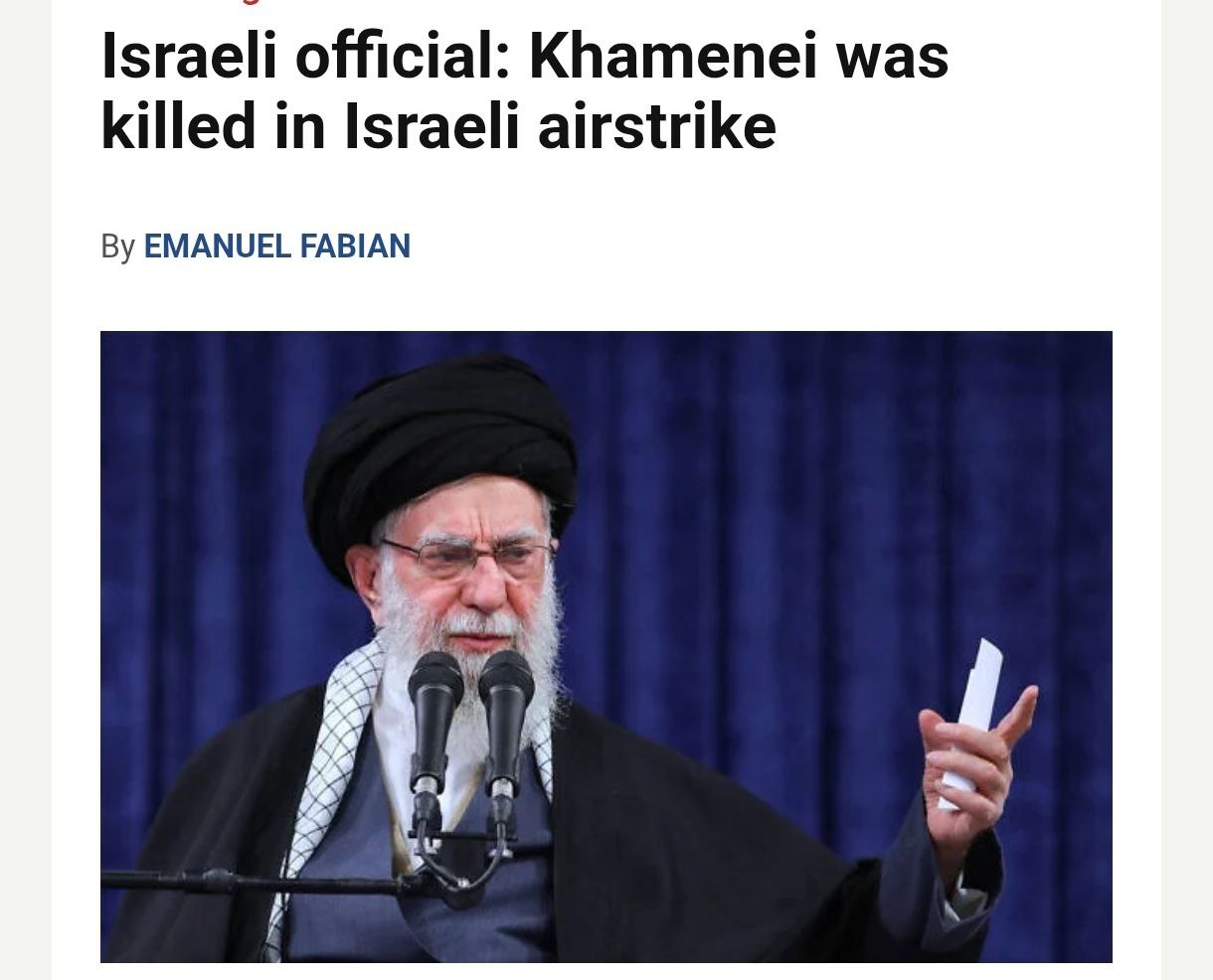 Про смерть аятоли Хаменеї пише і низка західних та ізраїльських ЗМІ. Так, видання The Times of Israel із посиланням на ізраїльського чиновника стверджує, що верховного лідера Ірану було вбито внаслідок ізраїльського авіаудару.