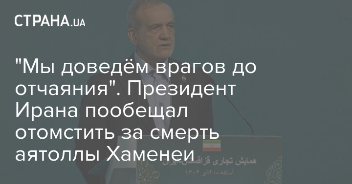 "Ми доведемо ворогів до відчаю". Президент Ірану пообіцяв помститися за смерть аятоли Хаменеї