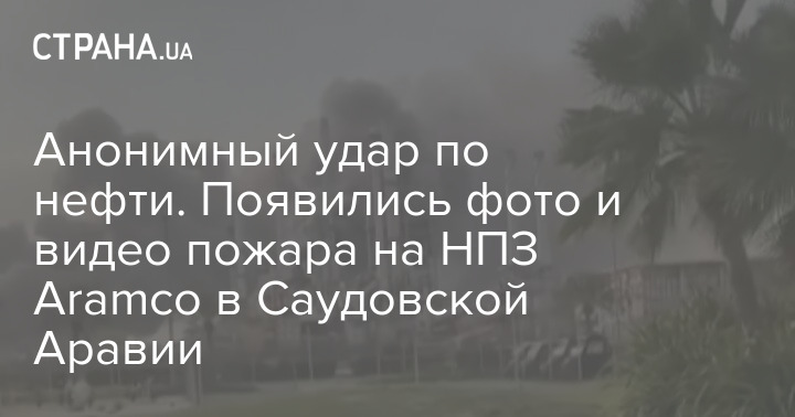 З'явилися кадри пожежі на нафтопереробному заводі компанії Aramco в Саудівській Аравії, по якому було завдано удару.
