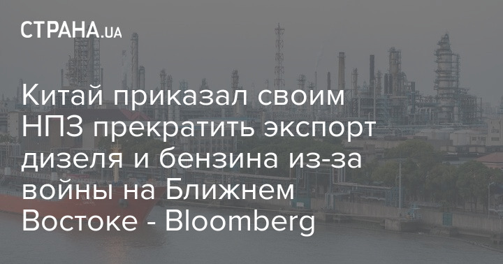 Китай наказав своїм НПЗ припинити експорт дизеля та бензину через війну на Близькому Сході - Bloomberg