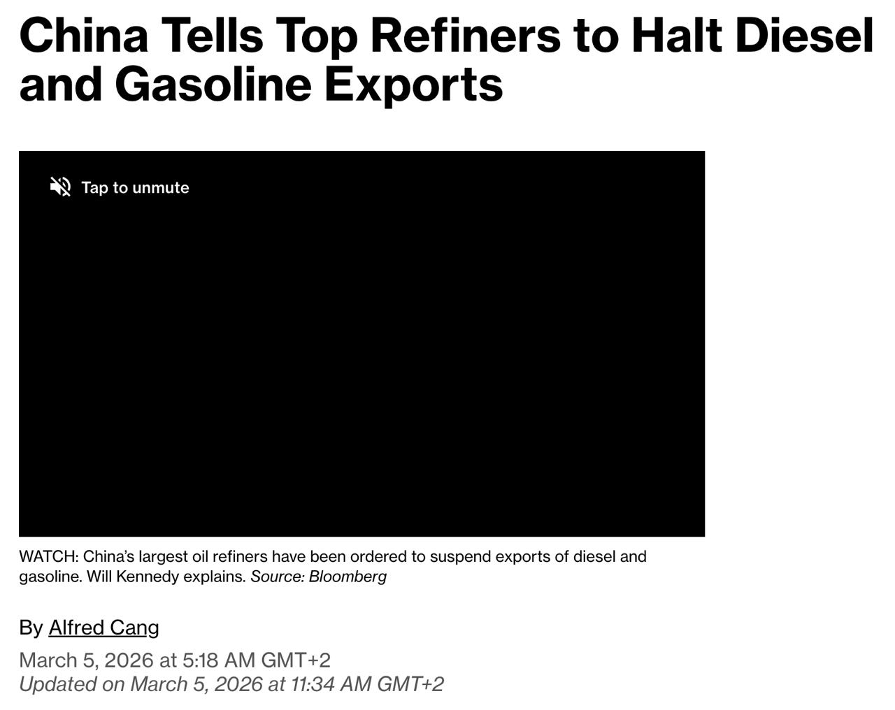 При цьому Bloomberg зазначає, що Китай не єдиний, хто так робить. З початку війни нафтопереробні заводи країн від Японії до Індонезії та Індії почали скорочувати обсяги переробки та зупиняти експорт.