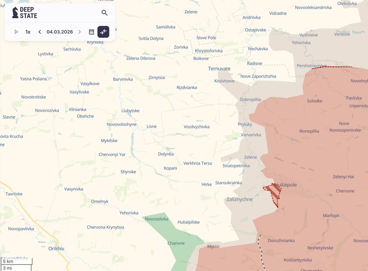 Раніше ми підбивали підсумки попереднього дня. За даними моніторингового ресурсу Deep State, армія РФ просунулась у Гришино за Покровським та в Гуляйполі. З урахуванням цих поступів РФ контролює понад 80% Гуляйполя. Також у четвер відбувся обмін полоненими за формулою "200 на 200 осіб". При цьому мирні переговори поки що відкладені через війну в Ірані.