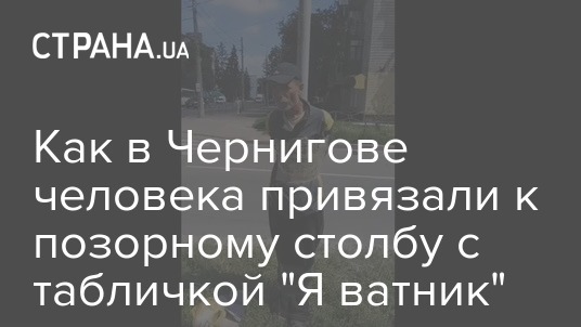 В Чернигове мужчину привязали к столбу на улице, повесив ему на грудь табличку с надписью "Я ватник".