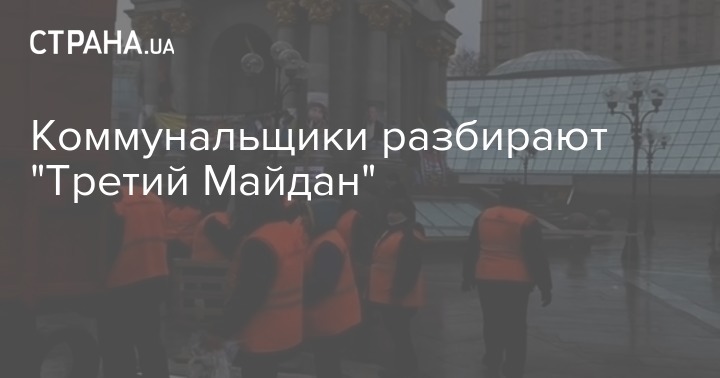 Сотрудники коммунальных служб Киева проводят демонтаж палаток на Майдане Незалежности.