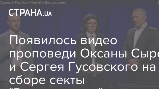 В сети появилось видео майского выступления вице-спикера Верховной Рады Украины Оксаны Сыроид и депутата Киеврады Андрея Гусовского на собрания религиозной секты "Возрождение", чьим пастором называют Владимира Мунтяна.