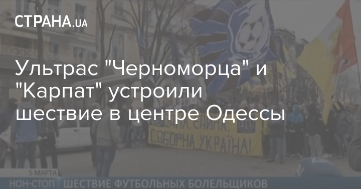 Фанаты клубов "Черноморец" и "Карпаты" 5 марта провели на улицах Одессы шествие в поддержку единства Украины. Соответствующие видеозаписи размещены на YouTube.