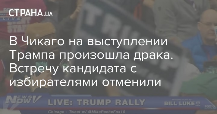 Выступление кандидата от Республиканской партии США Дональда Трампа в Чикаго спровоцировало драку с участием его сторонников и противников. В результате несколько человек, в том числе двое полицейских, получили травмы различной степени тяжести. Массовый хаос вынудил организаторов отменить мероприятие.