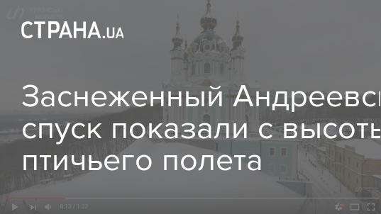 Журналисты с помощью квадрокоптера засняли укрытый белым одеялом февральского снега Андреевский спуск в Киеве с высоты птичьего полета.