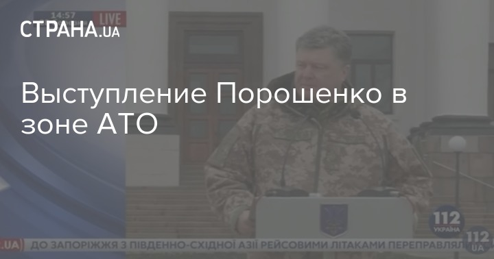 Президент Украины Петр Порошенко выступает во время визита в зоне АТО. Трансляцию ведет телеканал "112 Украина".
