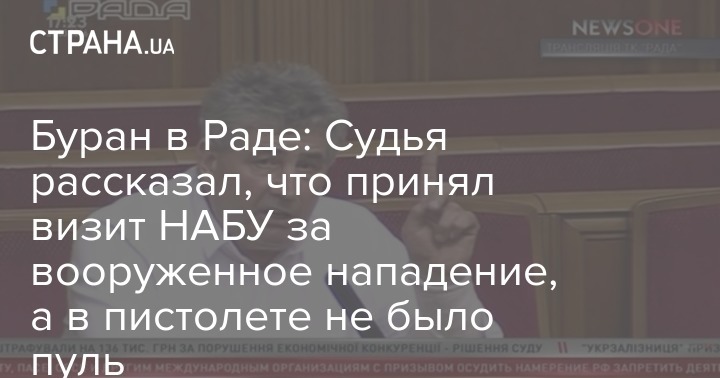 Судья Малиновского районного суда города Одессы Алексей Буран заявил, что в его пистолете не было пуль. Об этом он рассказал с трибуны Верховной Рады, где рассматривалось представление о разрешении на его арест.