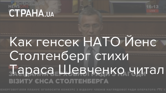 Генсекретарь НАТО Йенс Столтенберг процитировал украинского поэта Тараса Шевченко, выступая с трибуны украинского парламента, передает NewsOne.